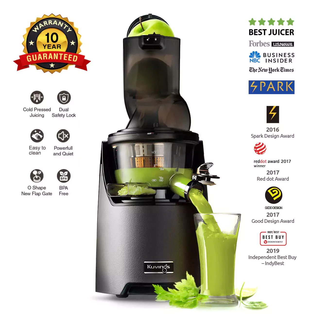 Dengan kecepatan pemerasan yang lambat, juicer ini menjaga nutrisi alami dari buah dan sayuran. Kuvings Evo 820 menawarkan kemudahan pembersihan berkat mesin self-cleaning yang praktis dan desain yang teruji kualitasnya. Produk ini juga cocok untuk membuat jus, smoothie, bahkan es krim. Ukuran feeder tuber slow juicer Kuvings Evo 820, berdiamater 82 mm