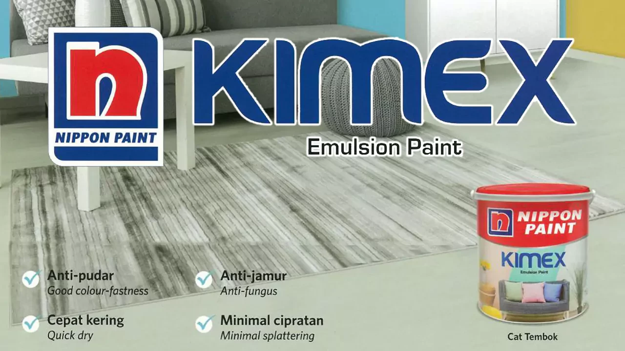 KIMEX adalah cat tembok interior yang berkualitas dengan bahan dasar vinyl akrilik. KIMEX hadir dengan pilihan warna yang menarik dan lapisan yang halus dan tahan lama (dengan Teknologi Anti-Pudar), cat ini dapat digunakan untuk tembok interior dan langit-langit berbahan dasar beton, plaster, papan, asbes, mortar, batako, dll; baik yang baru atau yang sudah pernah dicat.